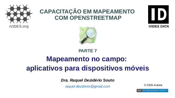 Não é necessário enviar dados sobre a Atividade 7, pois o rendimento de cada aluno será avaliado diretamente pelo seu nome de usuário no OpenStreetMap.
